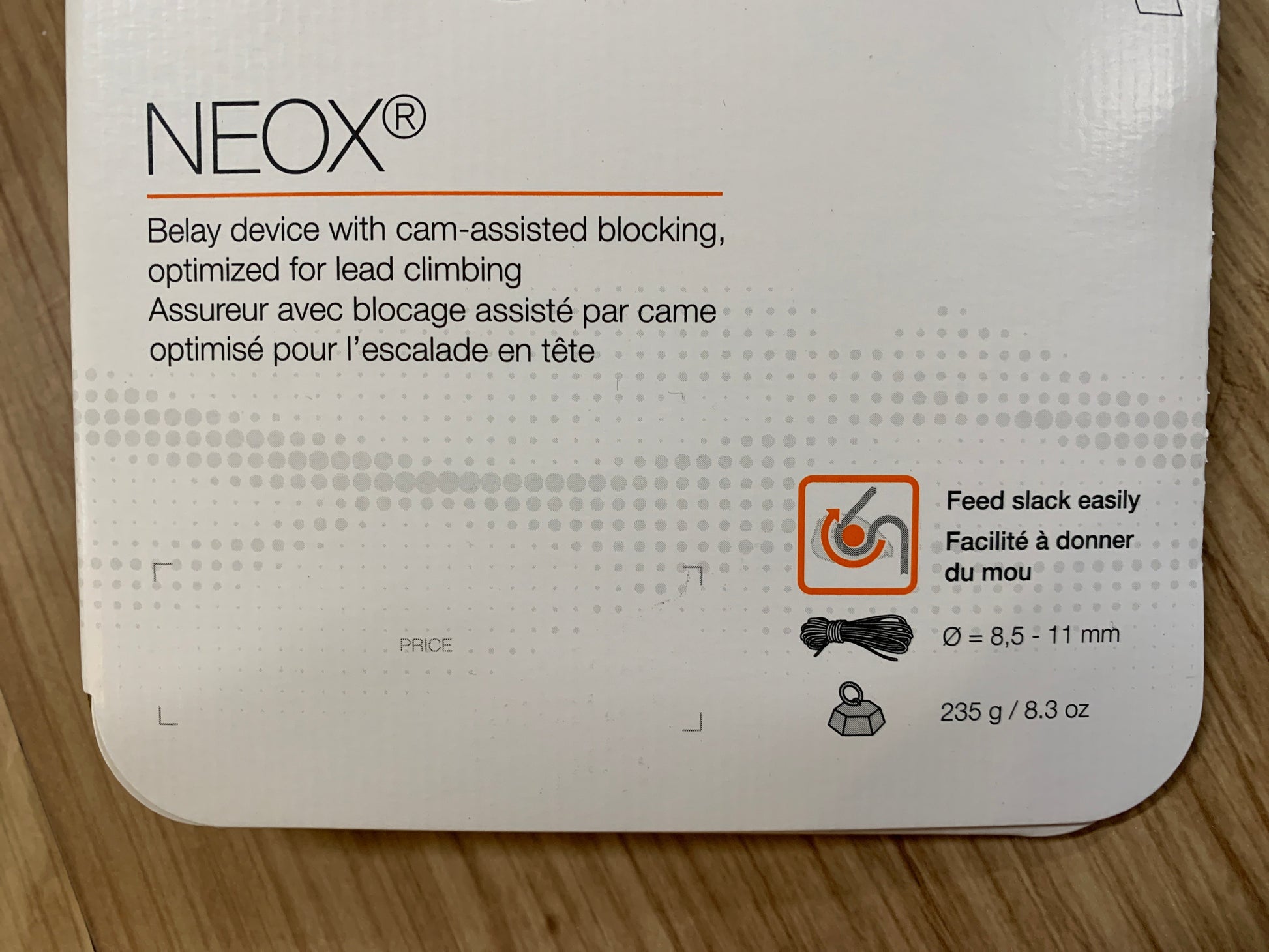 ブレーキアシスト機能付ビレイデバイスの『ネオックス』は、リードクライミングに適した設計になっています。